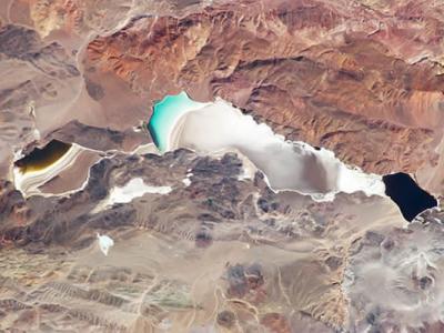 卫星照片展示阿根廷西北部安第斯山脉中的