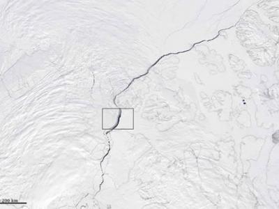卫星照片展示北冰洋波弗特海冰盖上的一条大裂缝 这条裂缝出现于2013年5月11日...