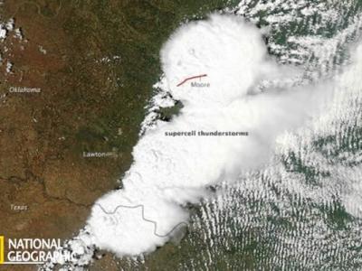 气象卫星展示产生此次俄克拉荷马州龙卷风