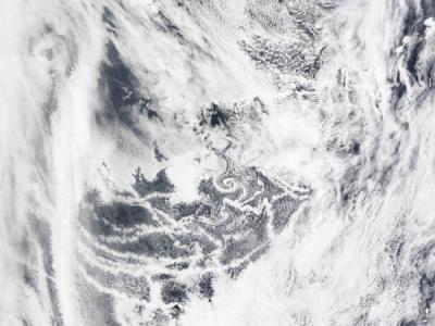 卫星照片展示北太平洋上空的船舶尾迹和漩