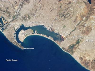 卫星照片展示美国和墨西哥边境圣迭戈-蒂