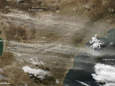 卫星照片展示阿根廷南部地区的沙尘暴景象