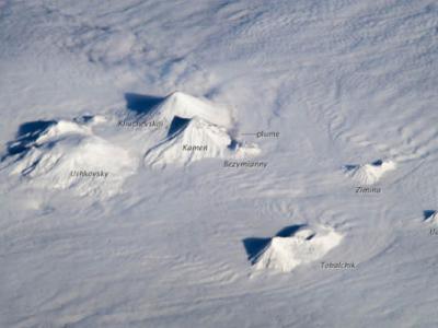 俄罗斯堪察加半岛中部的一系列火山景象 美国宇航局地球观测站公布了一张卫星照片...