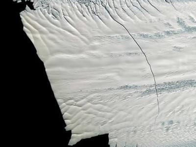 美国宇航局最新卫星照片显示南极松岛冰川裂缝已长达19英里,很可能将崩解分离出一...