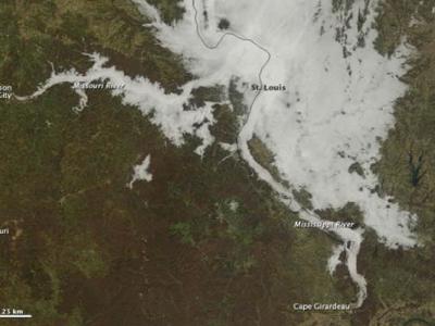卫星照片展示美国密苏里河和密西西比河上空的大雾景象 美国国家航空航天局地球观...