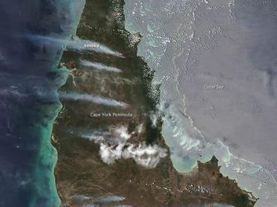 卫星照片展示澳大利亚约克角半岛的野火火灾景象 美国国家航空航天局地球观测站(...