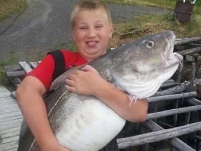 加拿大10岁少年怀抱一只巨大鳕鱼 (神秘的地球报道)据中新网:最近,社交网络上...