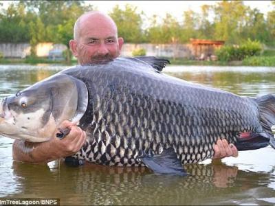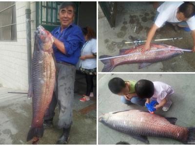 钓鱼发烧友捕获身长1.5米重23斤野生塘鲺