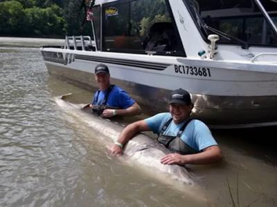 美国一对父子在加拿大不列颠哥伦比亚省的弗雷泽河钓到400公斤白鲟鱼 (神秘的地...