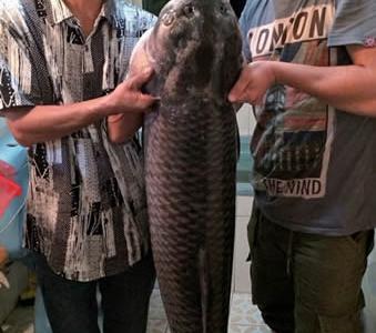 温州男子钓上一条重达74斤的螺蛳青鱼