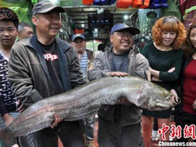 钓鱼爱好者在水库钓到长约1.27米重达32斤