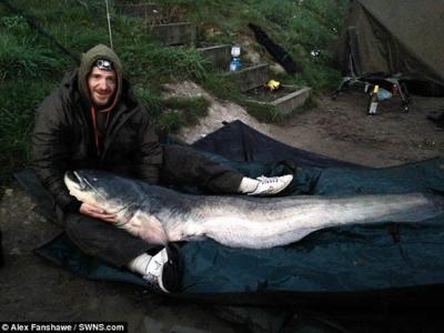 英国钓鱼爱好者钓到一条重达54公斤的超大