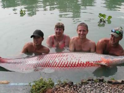 英国女子在泰国钓到重达110公斤的巨滑舌鱼