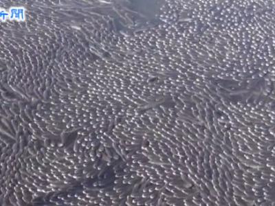 日本茨城县大洗町新年怪象:数万条乌鱼集结