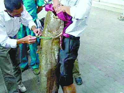 被打捞上来的百斤雄鱼王猛烈扭动着躯体,激起巨大的水花,让人们不由得惊叹它强悍...
