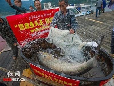 湖南张家界市慈利县江垭水库捕捞到百斤重