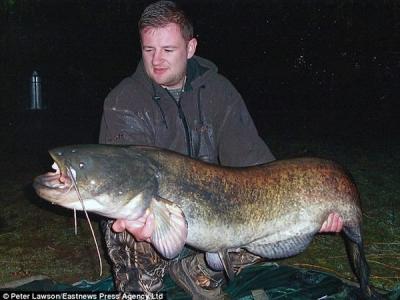 英国一个公园湖泊里钓到23公斤重大鲶鱼