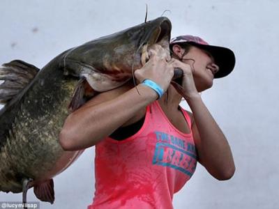 美国19岁女子徒手钓出32公斤巨型鲶鱼
