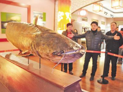 43公斤鲇鱼王制成标本展出 昨天,由长岭湖养殖中心捕获的重达43公斤的鲇鱼王,被...