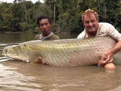 英国垂钓爱好者在南美洲圭亚那钓到一条巨大的野生巨滑舌鱼 英国垂钓爱好者汤森...
