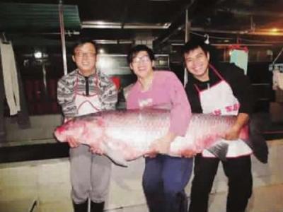 重庆钓鱼爱好者钓起一条45斤重的野生“鲶鱼王” 重庆钓鱼爱好者钓起一条45斤重...
