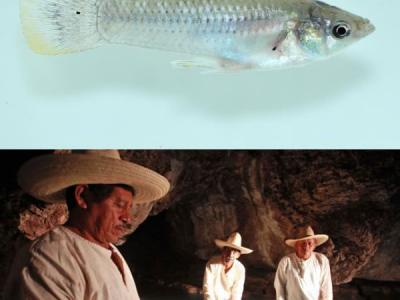 上图为短鳍花鳉,下图为墨西哥原住民索克人在Cueva del Azufre洞穴中祈雨仪式的场...