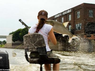 亚洲鲤鱼跃出水面袭击捕鱼者 巴恩斯猝不及防,被拍打到面部 巴恩斯惊慌失措...
