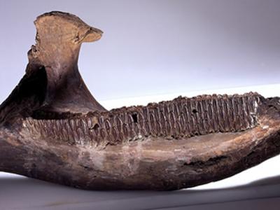 一块哺乳动物头骨化石,牙齿窝里的沉积物,原来是史前蜜蜂筑的巢穴。图片来源:uux...