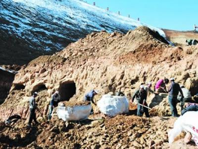 临夏和政抢救性挖掘出露的古生物化石 11月10日,和政古生物化石国家地质公园桦林...