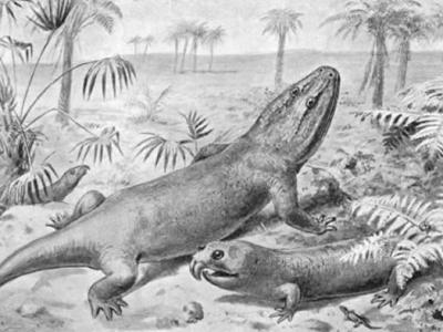 乳齿螈和喙头龙。乳齿螈是晚三叠纪生物灭绝前最大的陆地动物之一。喙头龙也是此次...