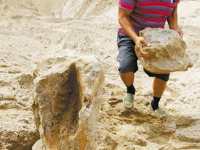 石家庄一工地挖出动物化石因破损严重无法确定动物种类 8月17日,石家庄市中华大...