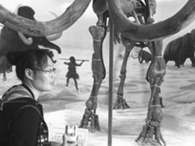 坐落于沈阳师范大学的辽宁古生物博物馆迎来了首个开馆日,在展厅内,真猛犸象化石...