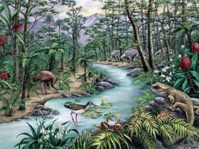 白垩纪环境复原图 1.37亿年前的地球上,一片繁荣。那是白垩纪(Cretaceus perio...