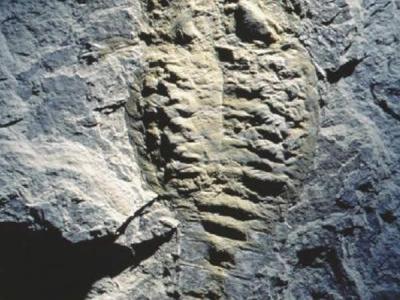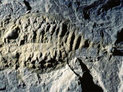 南非桌山苏姆页岩中的一个广翅鲎化石,其年龄约为4.4亿年。它保存完好,你可以看...
