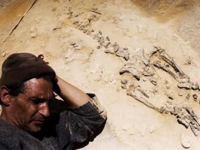 秘鲁沙漠中正在挖掘的化石 在秘鲁的安第斯山脉与太平洋之间是一片世界上最荒凉的...