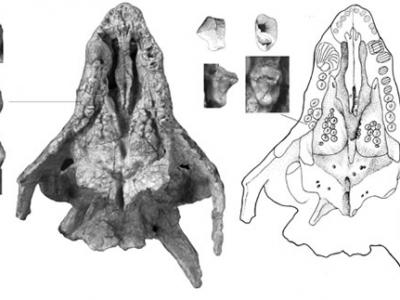祁连双列齿兽头颅腹视图 祁连双列齿兽头颅侧视图 中国科学院古脊椎动物与古人...