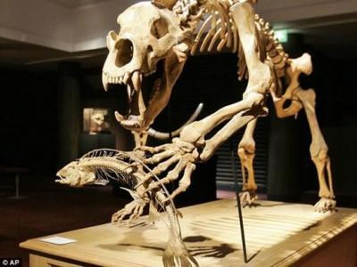 这具骨架展现了一只正在捕鱼的古洞熊 剑齿虎 侏罗纪时期一种名为Ophtalmos...