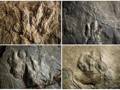 恐龙足印化石布于筑路块岩上。史塔克发现恐龙足印化石。(神秘...