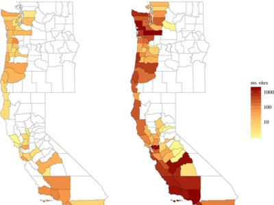 头足类分布于东北太平洋的深渊。(a) 显示每个分类单元所有目击记录的地图。(b)...