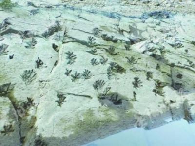 贵州三都县都江镇打鱼社区河水褪去后惊现“老虎跳”印痕化石(...