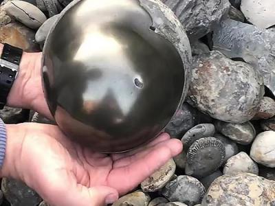 英国男子在约克郡海岸发现“炮弹”石头 弄开后里面藏侏罗纪时...