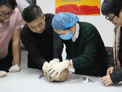 专家对扎赉诺尔人头骨和鲜卑人头骨化石进行考古分析和取样鉴定...