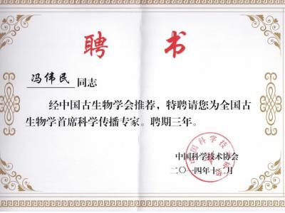 南京古生物所冯伟民研究员被聘为全国古生物学首席科学传播专家 (神秘的地球报道...