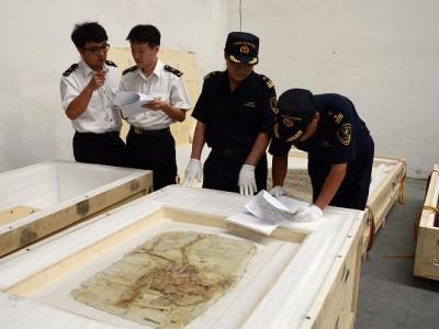 沈阳海关关员与出入境检验检疫人员共同验放出境参展古生物化石 沈阳海关关员查...