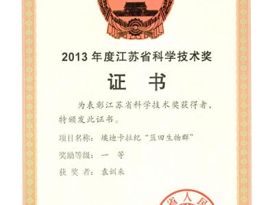 “埃迪卡拉纪蓝田生物群”获2013年度江苏省科学技术奖一等奖 (神秘的地球)据中...