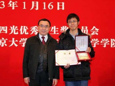张洪涛参事为蔡晨阳颁奖 1月16日下午,第三次李四光优秀学生奖颁奖典礼在北京大...