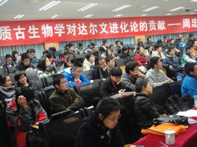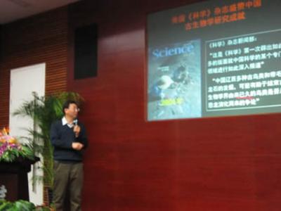 周忠和院士作“地质古生物学对达尔文进化论的贡献”科普报告 2012年12月18日下午...