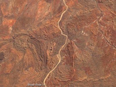 美国宇航局卫星拍摄的西澳皮尔巴拉区的斯特雷利池岩层 今天澳大利亚浅水水域中...