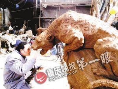 周宗凯正在进行雕塑创作,重现已经灭绝了的亚利桑那豹 川美教授用雕塑重现灭绝...