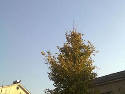 老戴说绿光是从树梢方向射过来的 老戴架起梯子,准备整修二楼外层 院子里一...